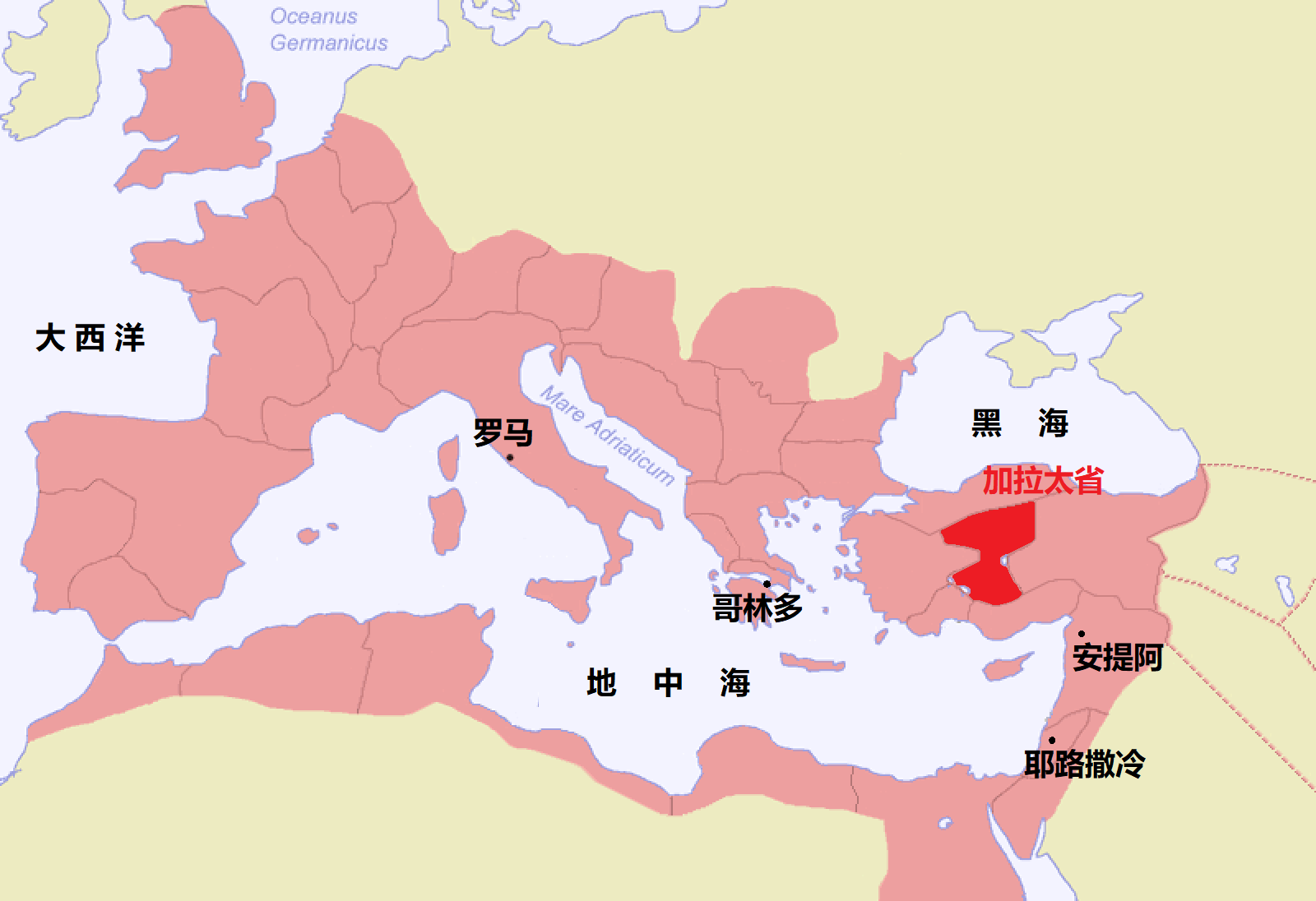 小亚细亚半岛北方的加拉太地区,原是塞尔特人(Celtic)的定居之地,罗马帝国在此基础上建立了加拉太行省。加拉太省还包括了南方的彼西底地区、以哥念地区和弗吕家地区的一部分。保罗与巴拿巴在主后48-49年的第一次传道旅程中(徒十三4-十四26),在加拉太省南部的安提阿、以哥念、路司得、特庇传福音,选立长老、建立教会(徒十四23)。保罗与西拉在主后50-51年的第二次传道旅程中(徒十五40-十八22),再次坚固了这些教会(徒十六1-6)。保罗在主后52-57年的第三次传道旅程中(徒十八23-二十一17),又一次经过加拉太、坚固众门徒(徒十八23;十九1)。后来,有一些犹太假师傅用「别的福音」(一6)搅扰加拉太众教会,主张外邦人只有受割礼(五2;六12)、谨守律法(四10),先成为犹太人,然后才能承受神给亚伯拉罕子孙的应许。为此,保罗可能于主后56-57年在哥林多城过冬的三个月期间(徒十九21;二十2-3),先是写了《加拉太书》(林前十六3-7),然后又写了《罗马书》(罗十五22-32),阐述了「因信称义」的福音真理。