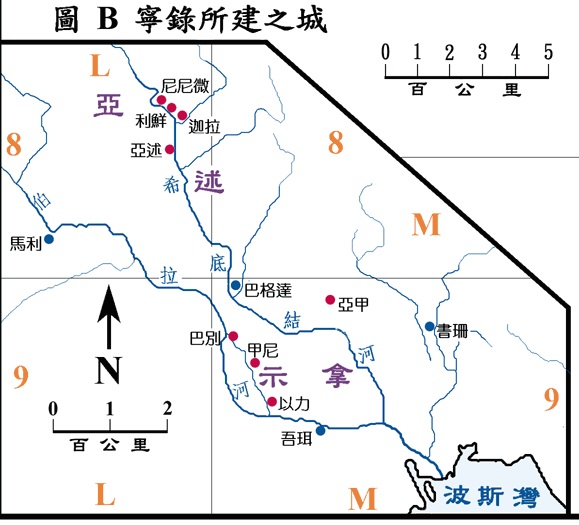 - 「迦拉」位于尼尼微城南方,底格里斯河与Zab河汇流处,即今日伊拉克的宁录,曾被亚述纳西拔二世(Ashurnasirpal II,主前883-859年)作为亚述帝国首都。