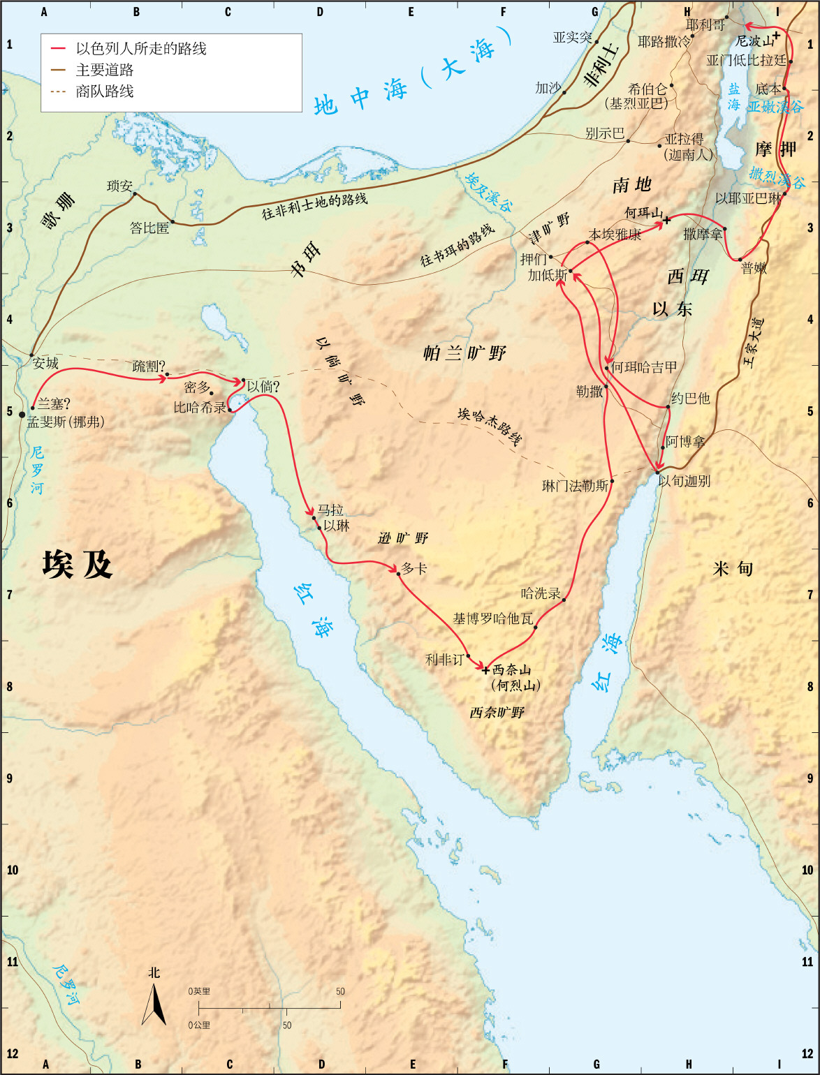 - 「非利士地的道路」(17节)意思是「前往非利士的道路」,沿地中海岸北上,穿过非利士地到达迦南。这是最直接、最短的路程,当时的商旅和军队都走这条主干道,沿途有埃及军队防守。