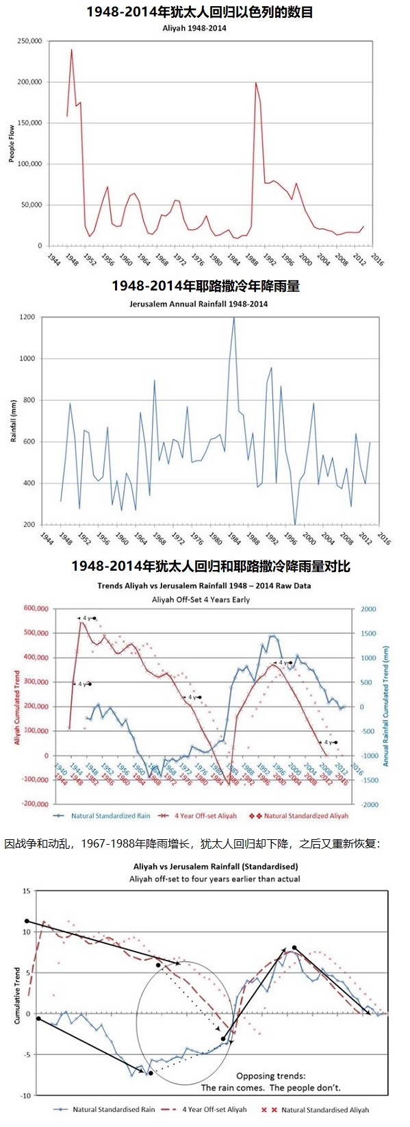 迦南地并没有足够的河流用作灌溉,如果没有按时、足够的秋雨和春雨,必然会发生旱灾。主后2世纪犹太人被驱离以后,降雨逐渐减少,19世纪的巴勒斯坦已经成了荒凉的干旱和半干旱地区,不适合人类的居住和繁衍。1857年英国领事James Finn写道:「这个国家几乎没有居民,因此最大的需要是人口。The country is in a considerable degree empty of inhabitants and therefore its greatest need is of a body of population」。19世纪末犹太人逐渐开始回归,当地的雨量逐渐恢复,今天的以色列又成了「流奶与蜜之地」(出三8)。