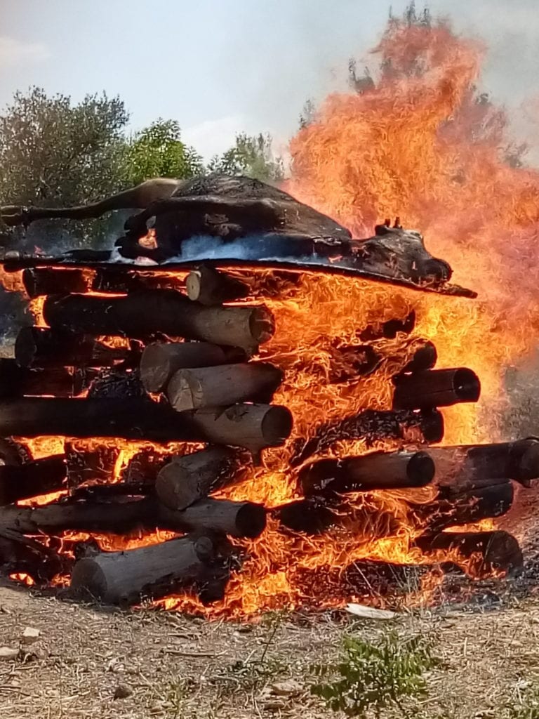 【民十九5】「人要在他眼前把这母牛焚烧;牛的皮、肉、血、粪都要焚烧。」