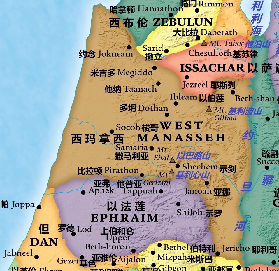 【书十六9】「另外在玛拿西人地业中得了些城邑和属城的村庄。这都是分给以法莲子孙的。」