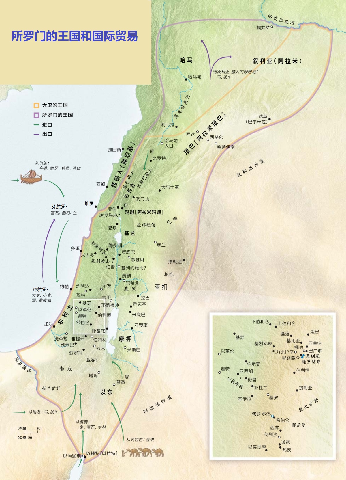 - 所罗门的疆界虽然很大,但都是大卫留给他的。所罗门时代以色列的版图是「从大河到非利士地,直到埃及的边界」(21节),应验了神的应许:「自埃及河直到幼发拉底河」(创十五18),「从旷野和这黎巴嫩,直到幼发拉底大河,赫人的全地,又到大海日落之处」(书一4)。
