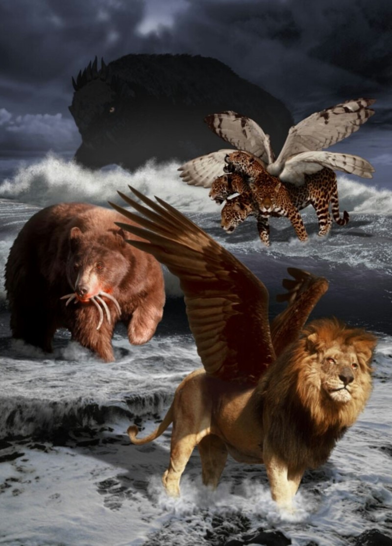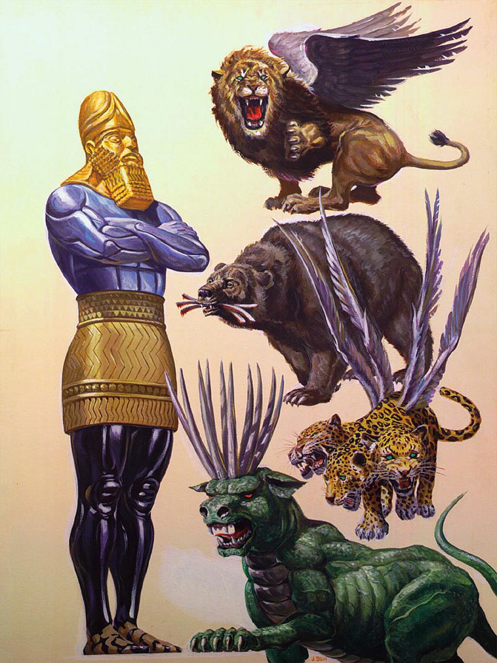 【但七3】「有四个大兽从海中上来,形状各有不同:」